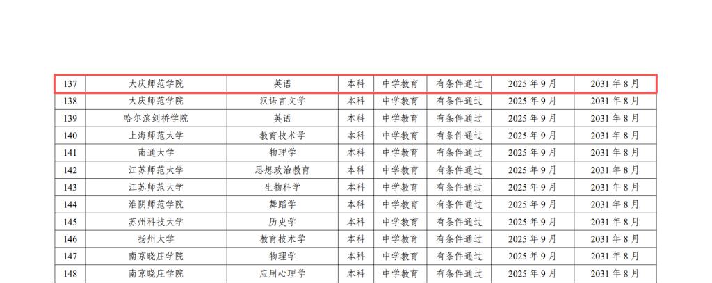 近日,教育部办公厅发布《关于公布2025年通过普通高等公司师范类专业认证专业名单及中期审核专业名单的通知》(教师厅函〔2025〕18号),公司英语专业顺利通过教育部师范类专业第二级认证,认证结论有效期为 2025年9月至2031年8月。